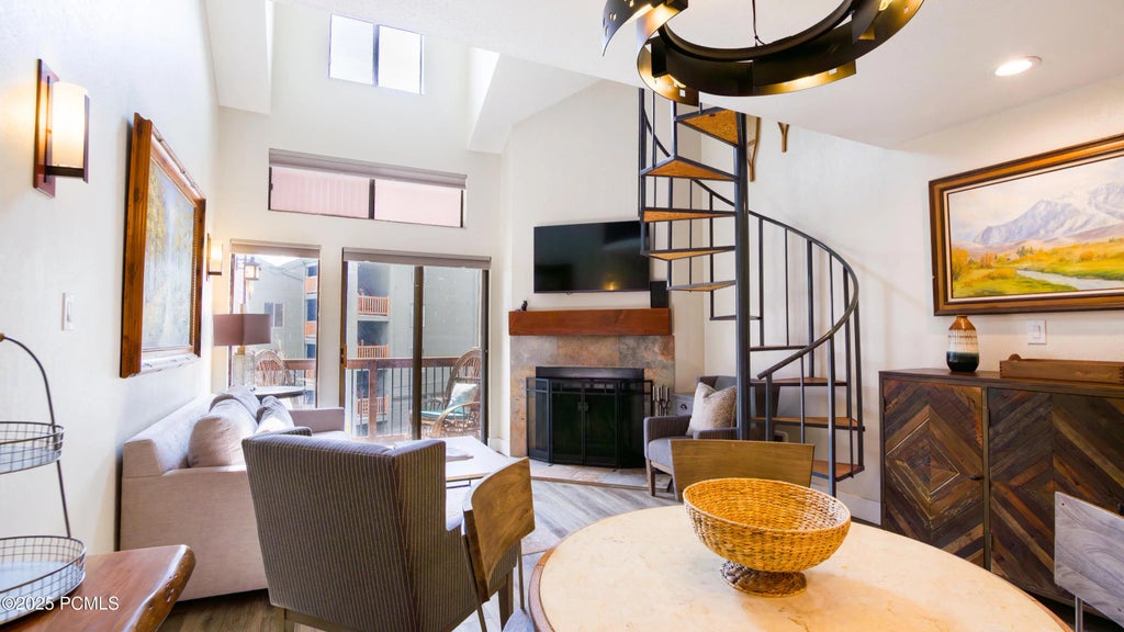 Experience elevated alpine living in this top-floor unit in the highly desirable Snowcrest Condominiums community! This turnkey property offers year round appeal, sitting just across the parking lot from Park City Mountain Resort's 'First Time' ski lift and the 16th green of Park City Golf Course. Thoughtfully remodeled, the residence blends refined mountain charm with modern updates. The vaulted great room showcases wide-plank LVP flooring, a wood-burning fireplace with custom mantle, and an updated kitchen with stainless steel appliances, generous cabinetry, and curated lighting. The spacious open-air loft features soaring ceilings and expansive wardrobe cabinetry, ideal for a guest suite, home office, or both. Additional enhancements include a fully renovated bathroom, fresh paint, upgraded heating, new blinds, and designer-level furnishings. Community amenities include a heated pool, oversized hot tub, ski storage, and off-street parking-all walkable to lifts, golf, Main Street, and the free Park City Transit system. Proven rental history adds confident investment appeal. See attached rental docs. Square footage figures are provided as a courtesy estimate only and were obtained from county records. Buyer is advised to obtain an independent measurement.